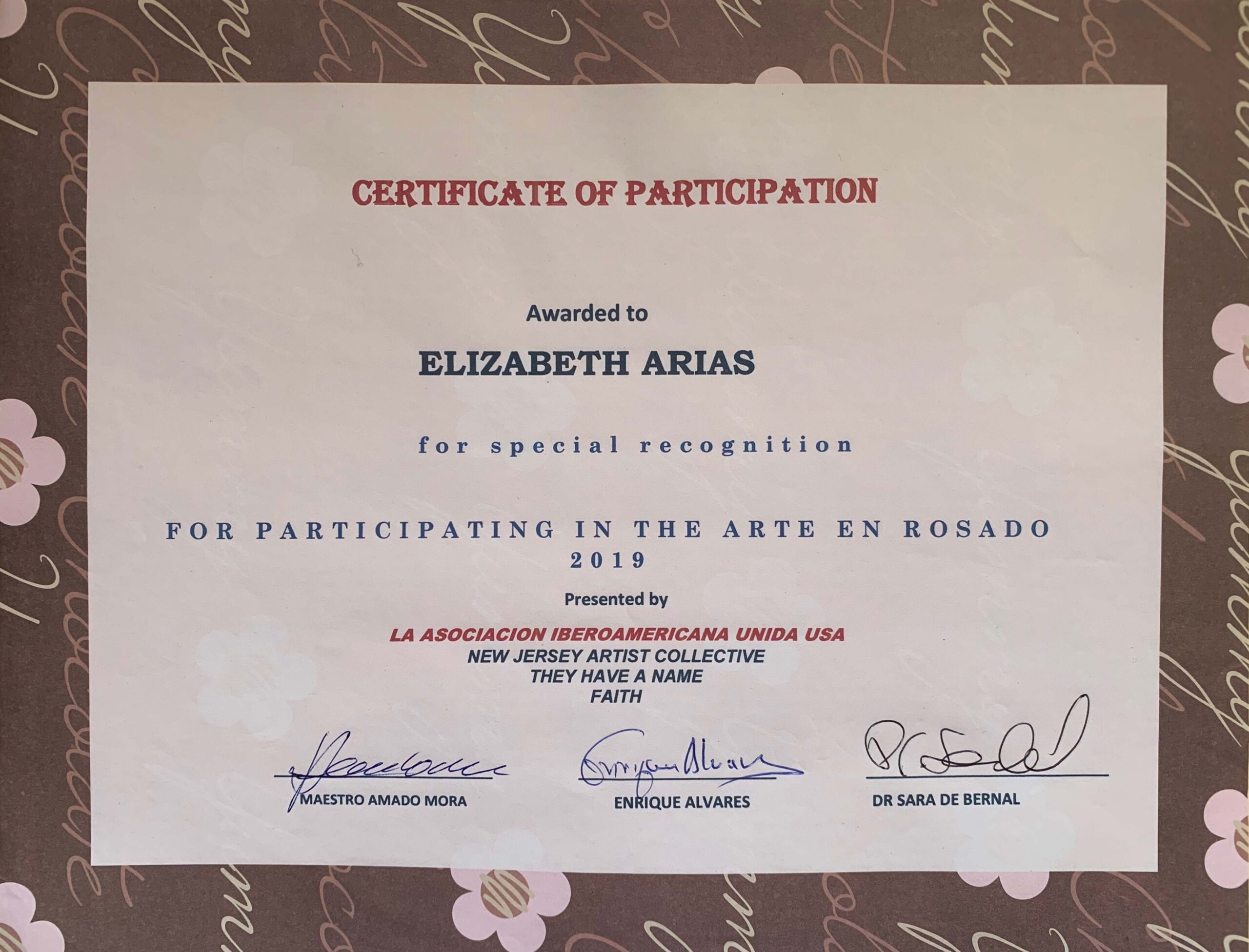 10-27-2019 Certificado de Participación – Arte en Rosado en contra del Cáncer