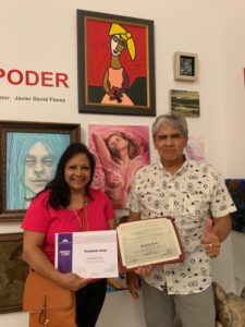 7 Con mi hermando al lado de mi obra de prevención contra el cáncer y los dos diplomas