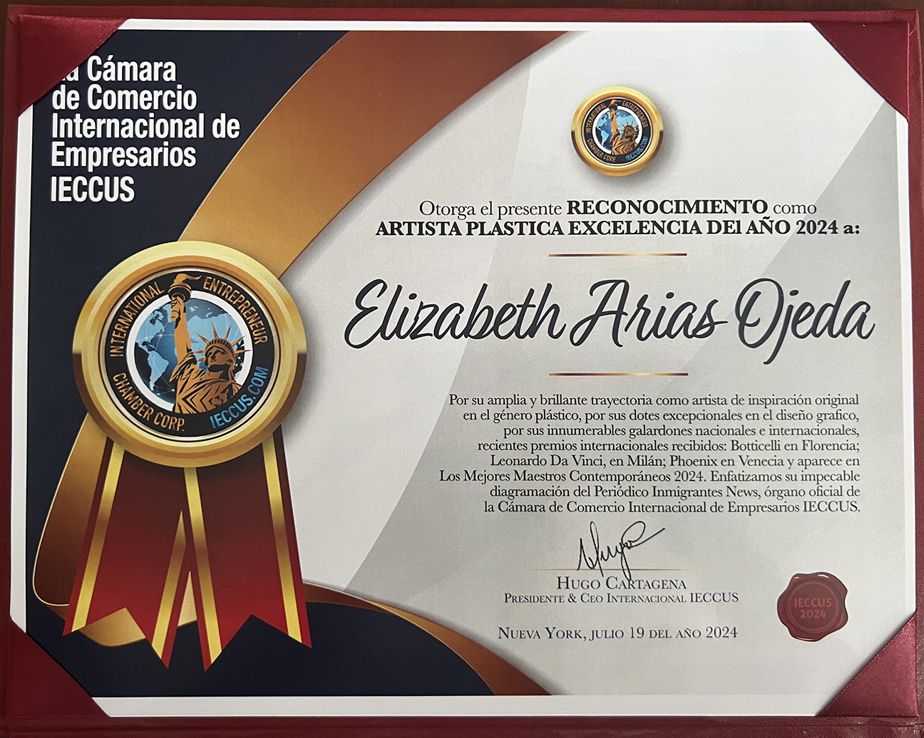 Reconocimiento Cámara de Comercio Internacional de Empresarios IECCUS 08/02/202408/02/2024 Elizabeth Arias Ojeda Reconocimiento Cámara de Comercio Internacional de Empresarios IECCUS – Artista plástica Excelencia del Año 2024 Comparte esto: Haz clic para compartir en X (Se abre en una ventana nueva) X Haz clic para compartir en Facebook (Se abre en una ventana nueva) Facebook Haz clic para compartir en LinkedIn (Se abre en una ventana nueva) LinkedIn Haz clic para compartir en Pinterest (Se abre en una ventana nueva) Pinterest Haz clic para compartir en Telegram (Se abre en una ventana nueva) Telegram Haz clic para compartir en Threads (Se abre en una ventana nueva) Threads Haz clic para compartir en WhatsApp (Se abre en una ventana nueva) WhatsApp Haz clic para compartir en Instagram (Se abre en una ventana nueva) Instagram