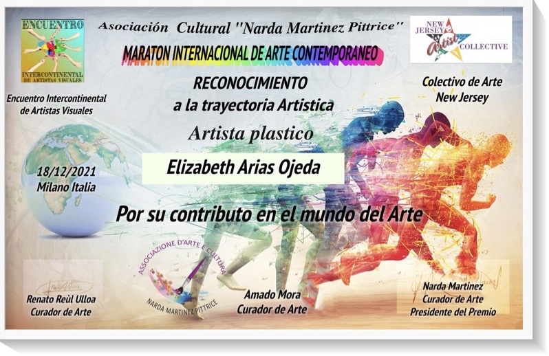 Reconocimiento Maratón Internacional de Arte Conteporáneo – Milano-Italia 12-18-2021 – Reconocimiento Consulado de Colombia en Newark y el Programa Colombia nos Une 5-13-2022 – ©elizabeth-arias.com