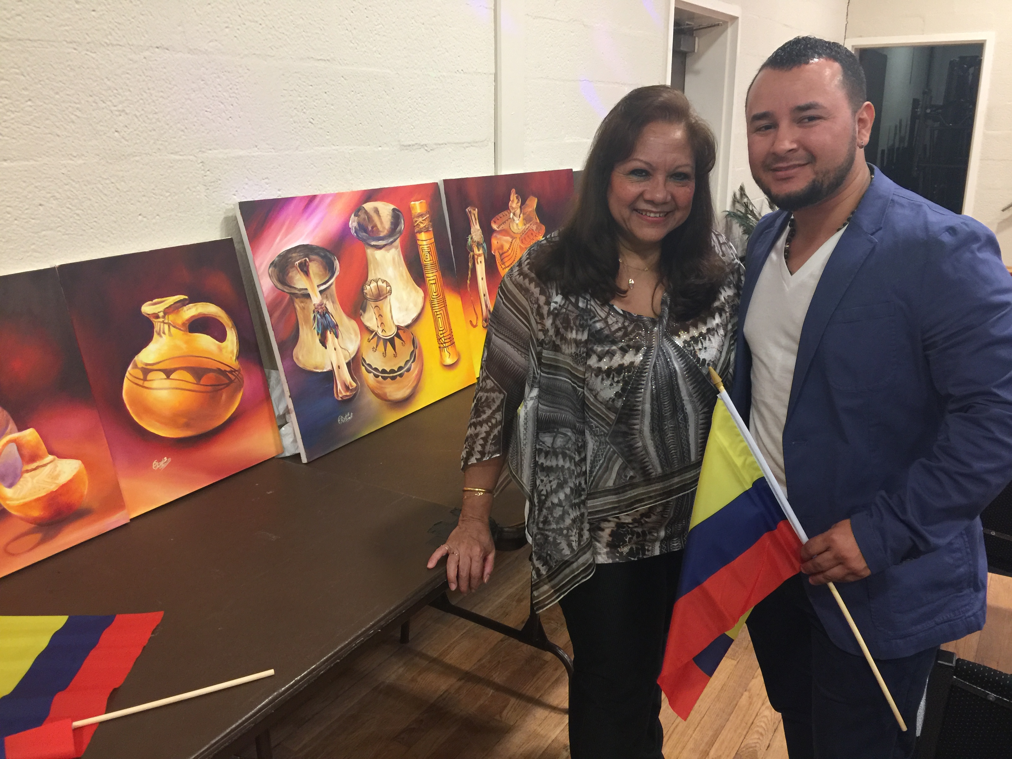Elizabeth Arias con Mauricio Alzate y parte de la colección «Etnias Colombianas»