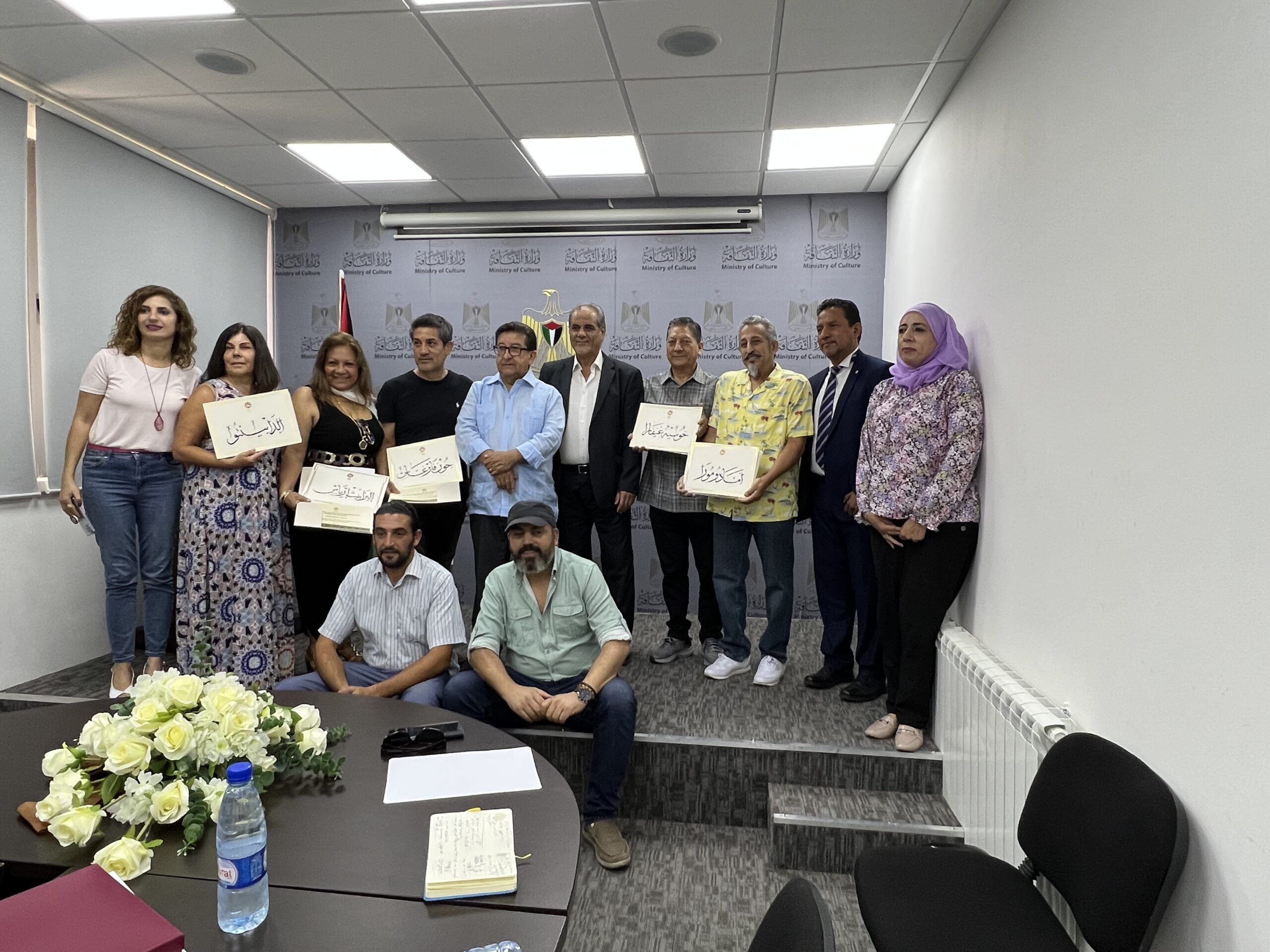 En la oficina del Ministerio de Cultura en Palestina – Todo el grupo con sus reconocimientos