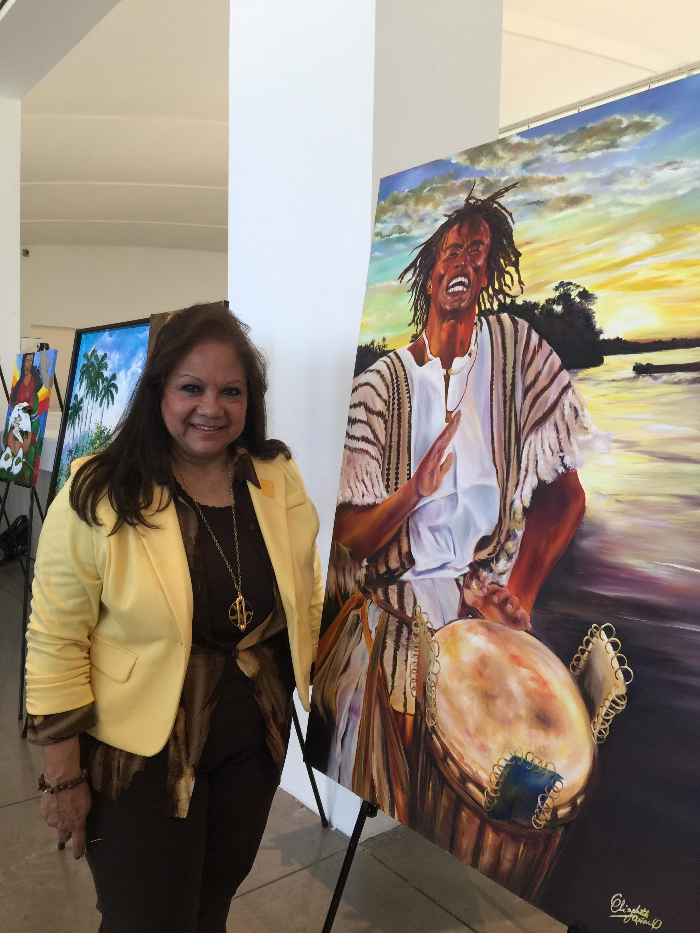 Elizabeth Arias Ojeda con la obra «Tambores»