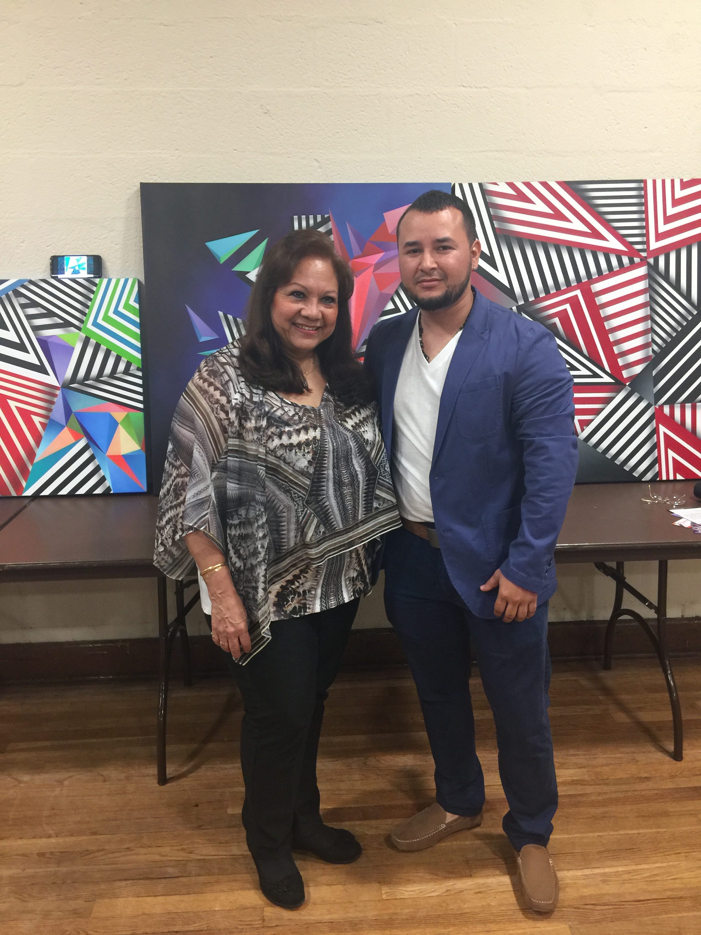 Elizabeth Arias Ojeda con la obra de Mauricio Alzate